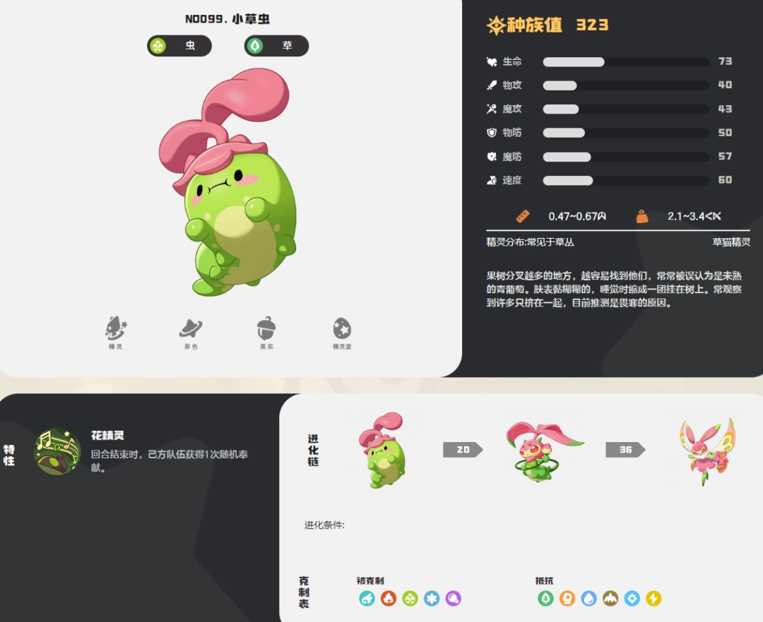 洛克王国世界小草虫图鉴玩家可以在游戏中抓取各种宠物,组成队伍进行战斗,比如小草虫,喜欢可以看看,给大家带来一些帮助。