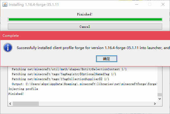 8、然后关闭它,如果以上步骤没有出现问题的话,自此Forge安装完毕,只需要添加Mod文件(document)即可使用。在电脑的任何地方按Win键 R键,输入"appdata",会出现以下窗口,