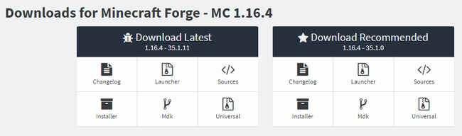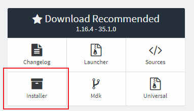 1、首先,请先到Forge官网下载,如果慢可以挂梯子。网站加载完成后,可以在左侧选择对应Minecraft版本的Forge,在这里我以1.16.4举例。选择版本后会出现以下界面,你应该(should)下载右边的那个。