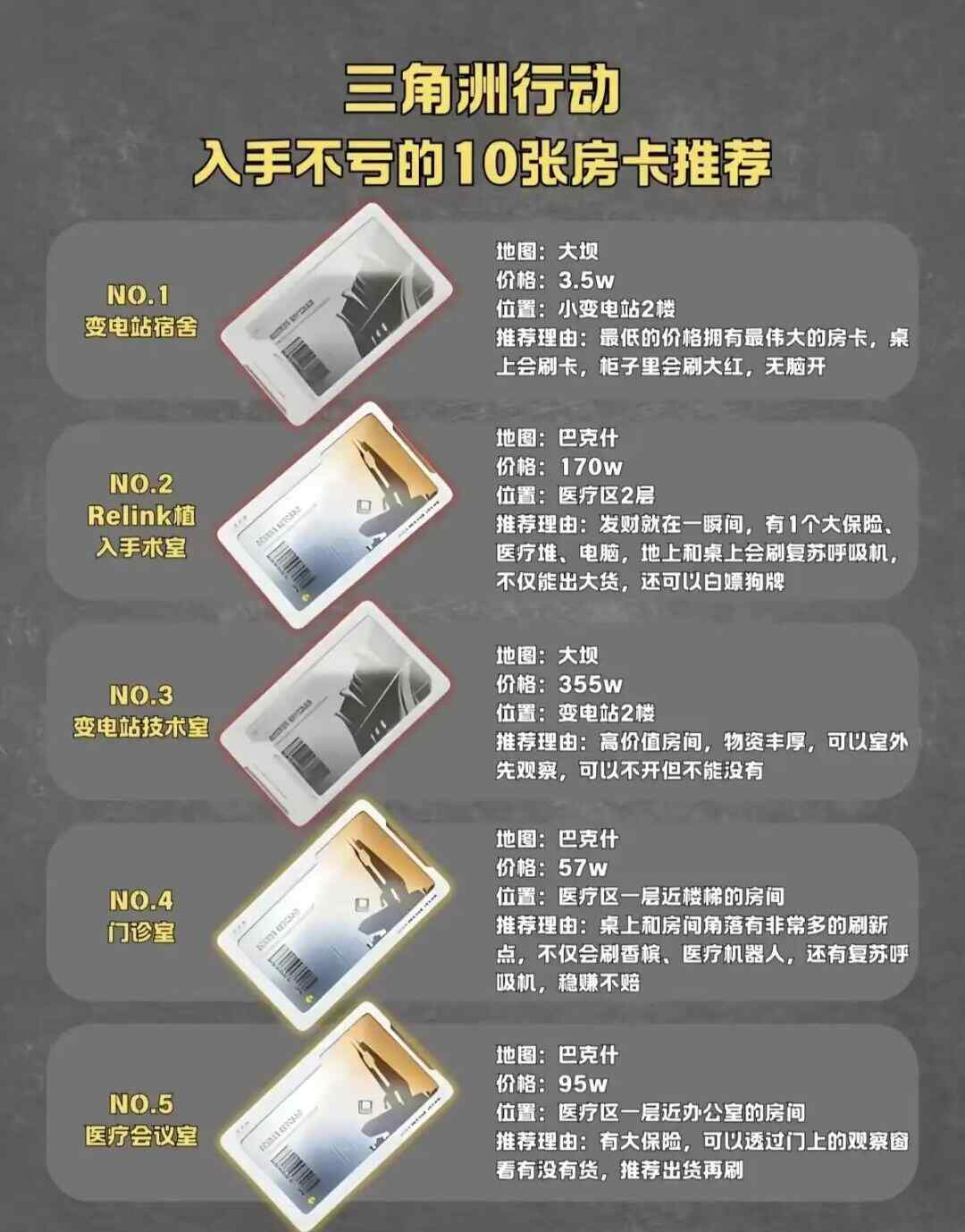 以上就是小编整理的三角洲行动十张高性价比房卡推荐最新教程,大家可以做个参考,欢迎持续关注本站。