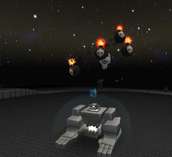 图腾柱会发出冲天光芒,伴随着一股怒气蔓延,周围的一切,接触到怒气都会被化为乌有,包括周围的图腾石柱,然后我们的萌眼星大BOSS——远古巨像就会出现在(zai)中央图腾所在的位置上: