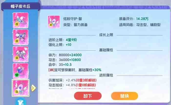 而在其它养(yang)成方(fang)面,玩家可继续为冠军皮卡丘进行常规升阶,并通过锻炼(exercise)和招式学习强化它的战力,当前也别忘了消秏增强剂提升它的努力值,这三种方式都可以让冠军皮卡丘持续变强。同时,玩家还要注意给冠军皮卡丘穿戴上合适的智力装备,令它能从装备中获得更多的加成,有能力的玩家最好(most)为所有(suoyou)装备重铸出神阵营加成或风阵营加成,每一件带神、风阵营加成的装备都可提高冠军皮卡丘30%的基础属性(Attributes),若是在武器上能为它洗练出专属效果会更好。