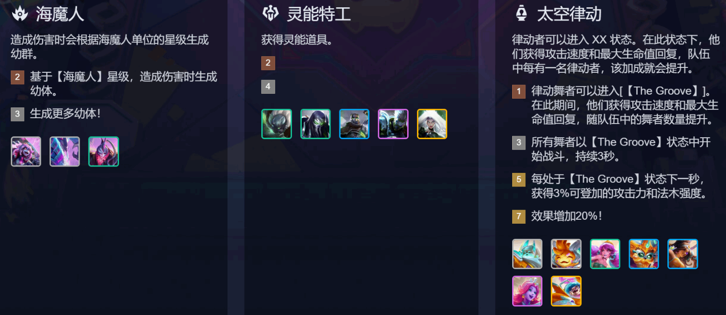 金铲铲之战S17全羁绊效果汇总太空(kong)律动 灵能特工 海魔人 暗星 霸天机甲 木灵族 未来战士 观星者 法官 幻灵战队 堡垒卫士 斗士 挑战者 神谕 织命者 狂战士 魔术师 游侠 狙神 重装战士 旅人 牧羊人