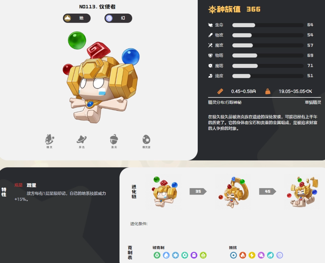 洛克王国世界仪使者图鉴玩家可以在游戏中抓取各种宠物,组成队伍进行战斗,比如仪使者,更多介绍看看下面。