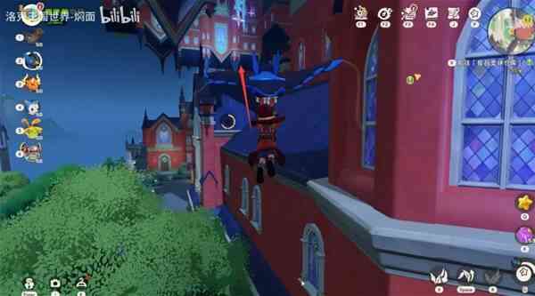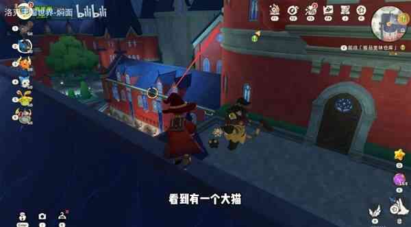 然後继續,中间护路过一只大猫,飞过这栋红房子(zi)之后(hou)就能(can)看见目(mu)的地了。