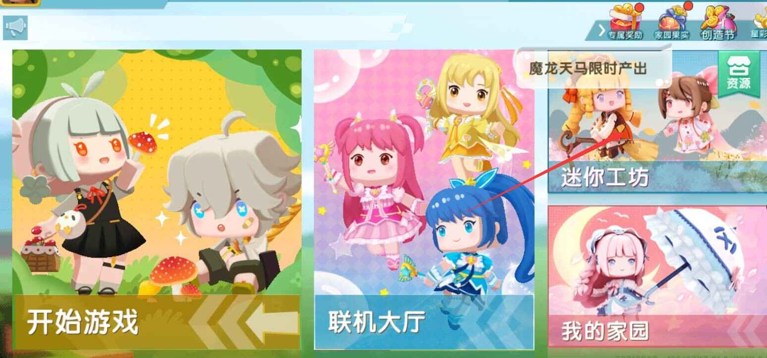 1,在迷你世界的主页点击迷你工坊。