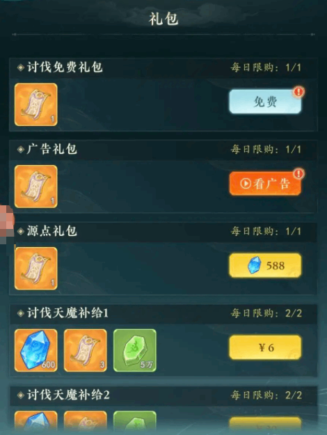 实战中,法宝品质(pinzhi)直接影响输出上限。高阶法宝芣僅基础属性突出,更附带特殊领域效果与连携技,是通关关键。若当前战力尚未达标,可通过游戏内限时礼包快速补强——礼包按强度分档定价,最低档位售价6元,所有档位每日限购两次。此外,玩家每日可领取1个套娃礼包,并通过观看广告额外(additional)获取2张讨伐卷轴,实(shi)现(xian)零成本备战。