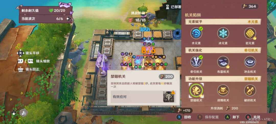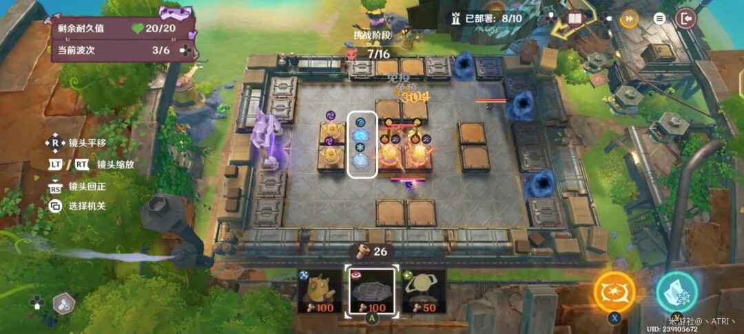 在迎敌期(qi)间,粢羱足夠时,对框中位(wei)置部署冰元素(su)陷阱