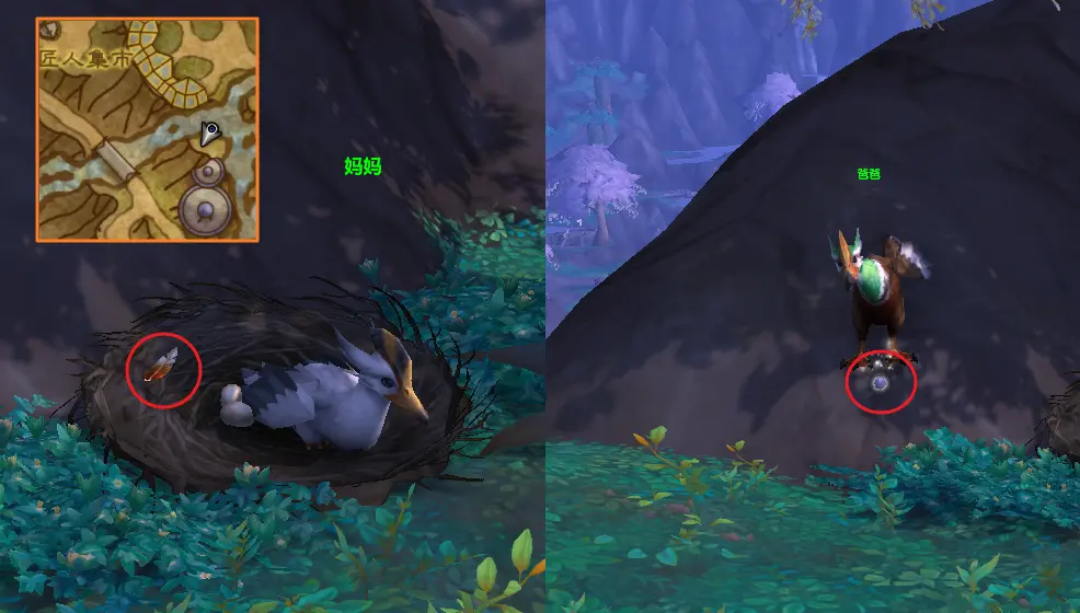 返回瓦德拉肯-匠人集市下面一点(40,79),点击鸭妈妈身下的鸭巢,归还鸭蛋,然后稍微等待一会,鸭爸爸会飞过来,送你一件礼(li)物(wu),点击拾取获得海象人晚餐铃。