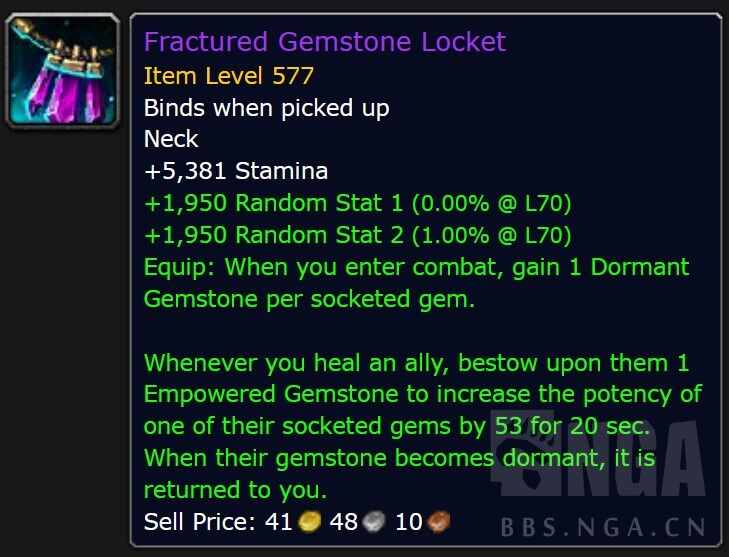 進入战斗时,每镶嵌一颗宝石,便获得 1 层休眠宝石。每当你治疗一名(yiming)盟友时,赐予他们 1 颗赋能宝石,使其镶嵌的一颗宝石的效力提高 53,持(chi)续 20 秒。当他们的宝石進入休眠状态时,会归还给你。