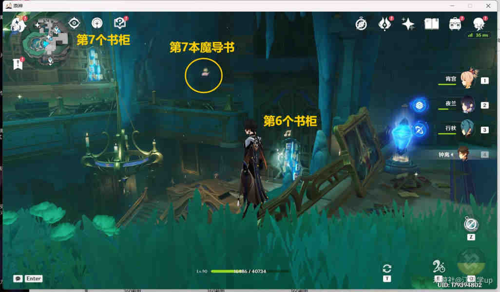 13、从上图第6个【书柜】出(chu)来后,继续往上走,上面即可看到第7本【魔导书】和第7个【书柜】,从我站的左边即可过去