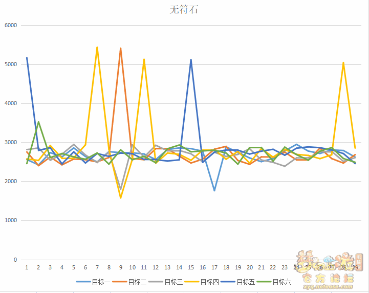 而硬说两者不同的话,就是携带百步穿杨的符石之后,伤害结果浮动较大,这点我们可以参考折线图。虽然携带了百步穿杨符石之后伤害超(chao)过(guo)3000的情况较多(排除暴击情况),但因为是两场战斗,不具备对比性。