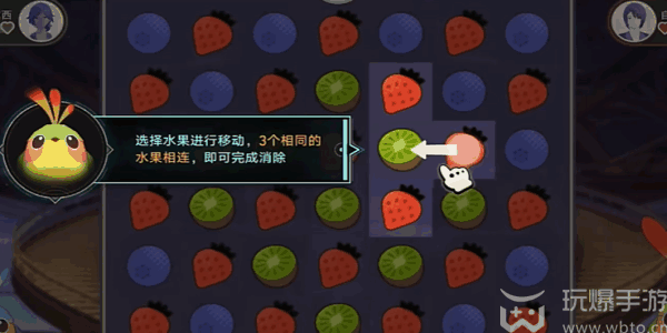 2、接着就可以进入到消消乐的关卡(Level)当中了,在此选水果(shuiguo)进(jin)行(xing)移动,3个相同的水果(shuiguo)相连,即可完成消除。