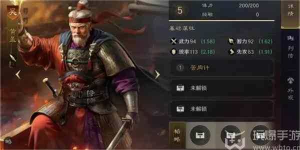 三国谋定天下黄盖培养攻略:基础信息: 闆質: 橙陣營: 吴兵种(bingzhong): 枪兵