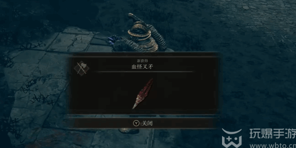 5、成功的擊敗这(zhe)个(ge)boss之后,就可以获(huo)得(de)到掉落(drop)的武器(qi)血怪叉矛。
