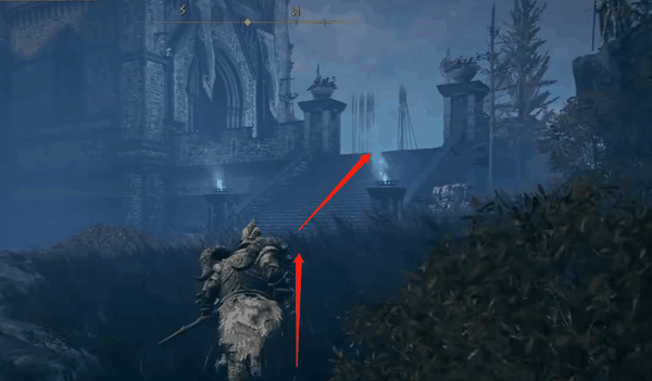 3、在走上后會有一个卡利亚骑(qi)士(shi),我们(women)本次(ci)不需要击败他,直走可以看到隱藏的路。