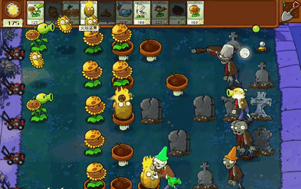 4、阳光向日葵造了一列之后,我们就可以(can)开始建造输(shu)出(chu)植物了,推荐建造冰香蒲,期间花盆菇和土豆雷,一有就去放。