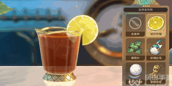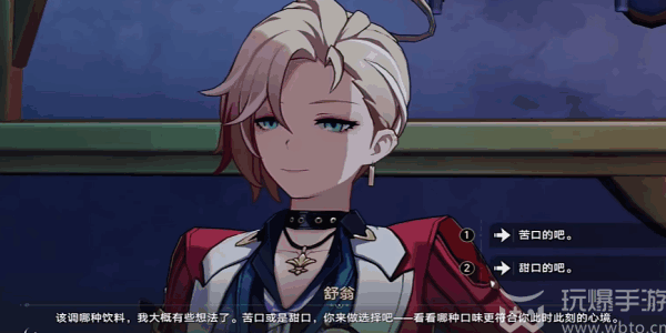 1、我们(men)先来到吧台的位置,在(zai)此和舒翁进(jin)行(xing)对(dui)话(hua)进入到调酒的页面。