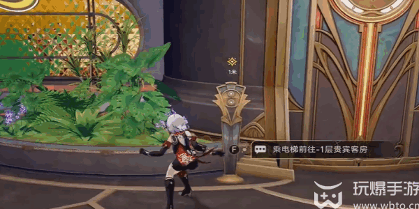 4、然后就切换视角(jiao)托帕,前往到电梯的位置,乘坐电梯到一楼。