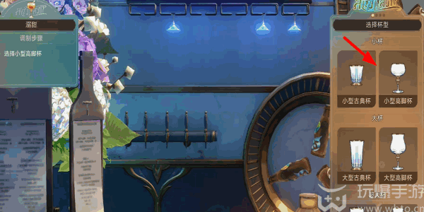 2、接着就可以看到(kandao)左上角的调制步(bu)骤,选小型高脚杯。
