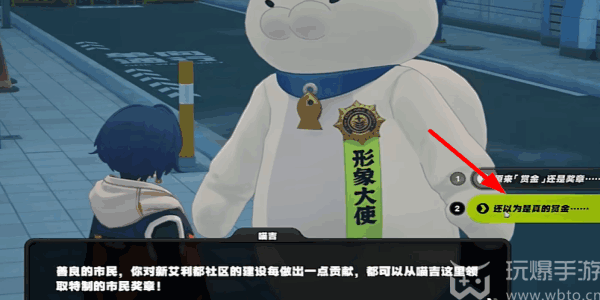 3、然后(ranhou)再对(dui)话当中就(jiu)会(hui)出现選項,第(di)一段对(dui)话挑【还以为是厅的赏金】。